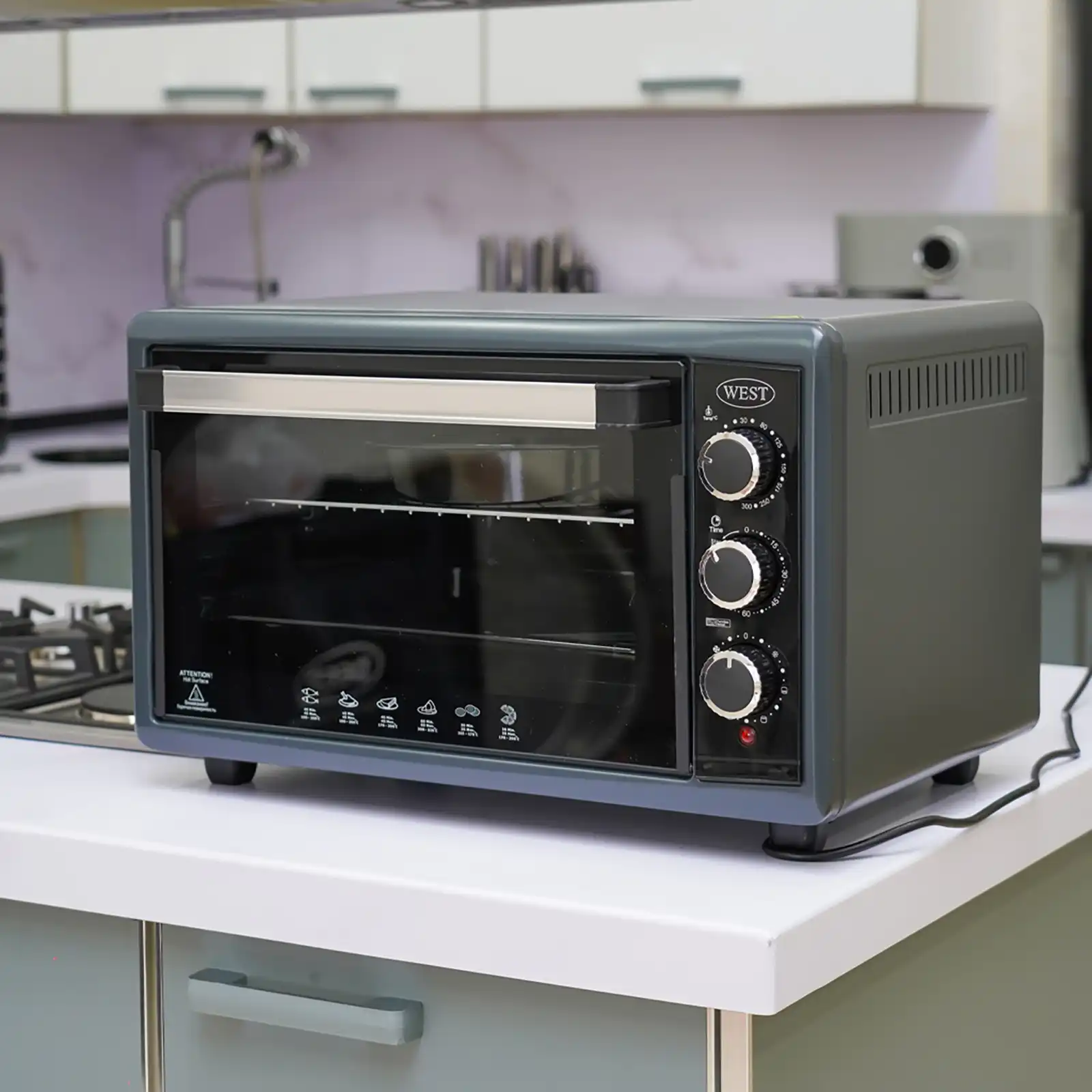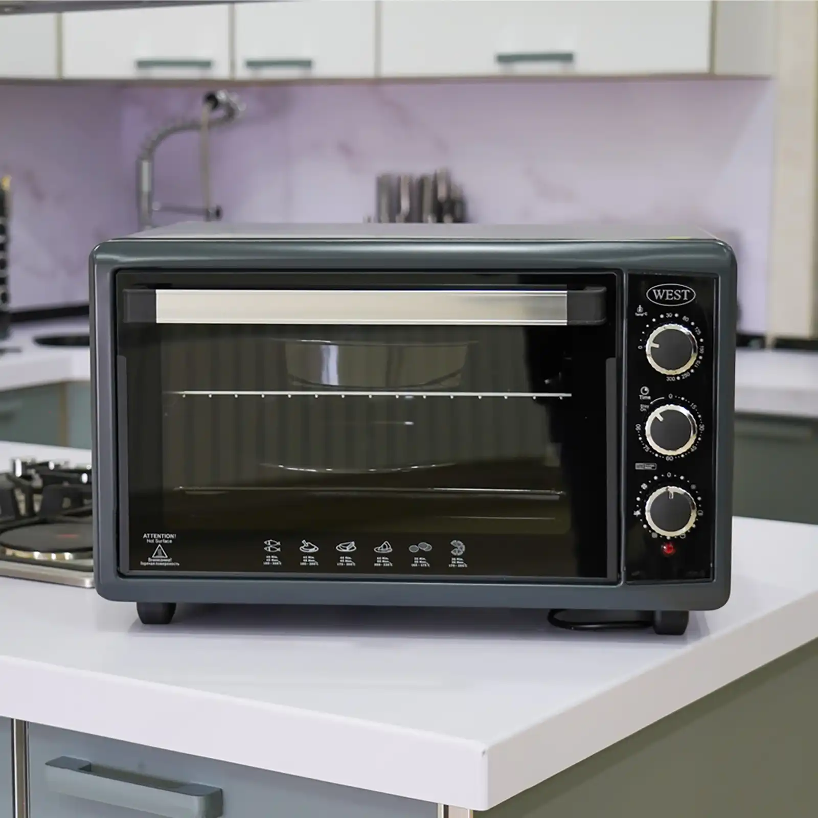 Aksesuarlar: qril şiş, 1 ədəd dördkünc (32×40 sm) və 2 ədəd dairəvi (36 və 40 sm) tava, metal tor barmaqlıq