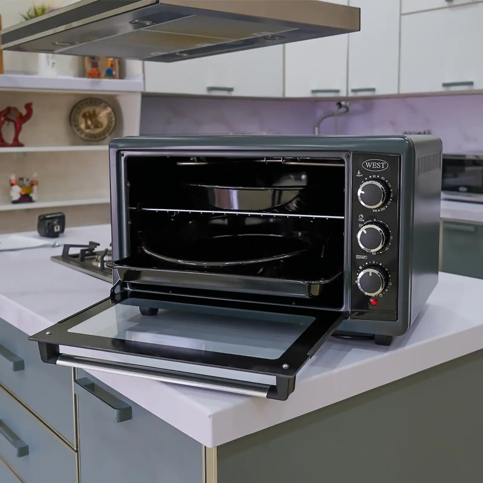 Aksesuarlar: qril şiş, 1 ədəd dördkünc (32×40 sm) və 2 ədəd dairəvi (36 və 40 sm) tava, metal tor barmaqlıq