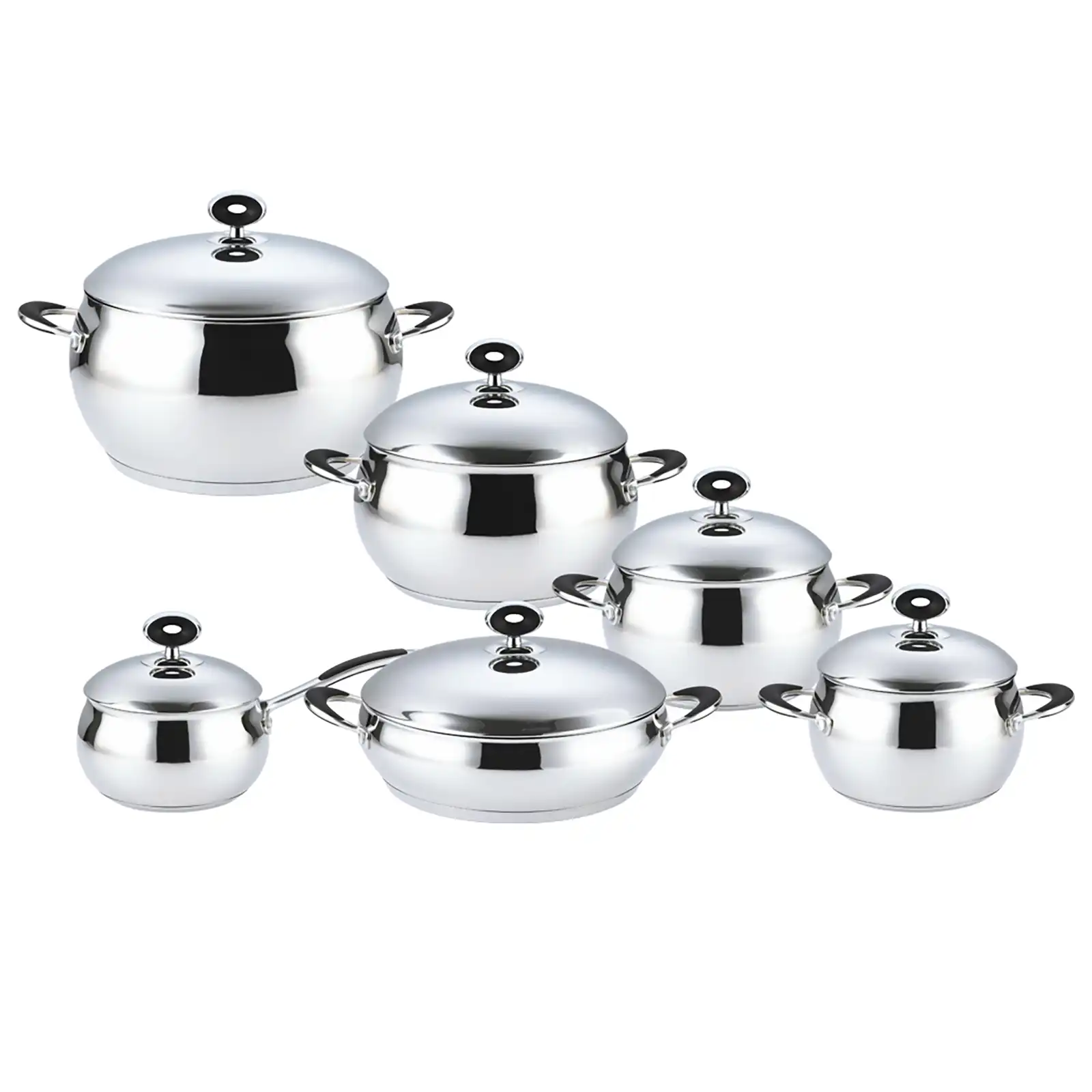 Davamlılıq və təhlükəsizlik üçün 304 paslanmayan poladdan hazırlanmış 12 parçalı qazan dəsti ilə yemək bişirmə təcrübənizi yeni səviyyəyə qaldırın. Polad qapaqlar buxarı və ləzzəti saxlayaraq yeməklərin keyfiyyətini artırır. İnduksiya altlıq sayəsində istiliyin bərabər paylanması bütün plitə növlərində, o cümlədən induksiya sobalarında istifadə üçün uyğundur.
