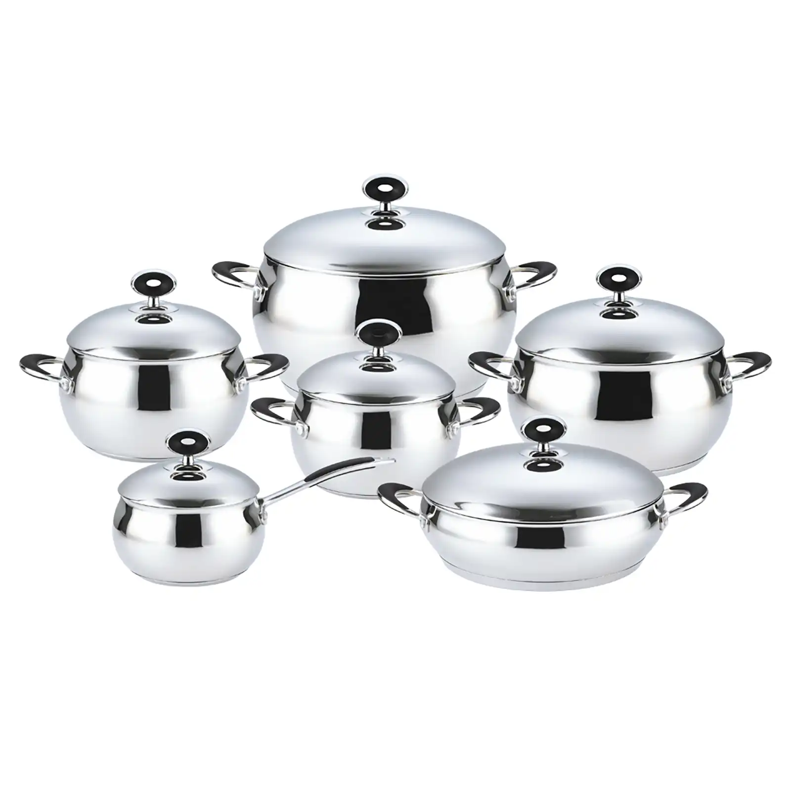 Davamlılıq və təhlükəsizlik üçün 304 paslanmayan poladdan hazırlanmış 12 parçalı qazan dəsti ilə yemək bişirmə təcrübənizi yeni səviyyəyə qaldırın. Polad qapaqlar buxarı və ləzzəti saxlayaraq yeməklərin keyfiyyətini artırır. İnduksiya altlıq sayəsində istiliyin bərabər paylanması bütün plitə növlərində, o cümlədən induksiya sobalarında istifadə üçün uyğundur.