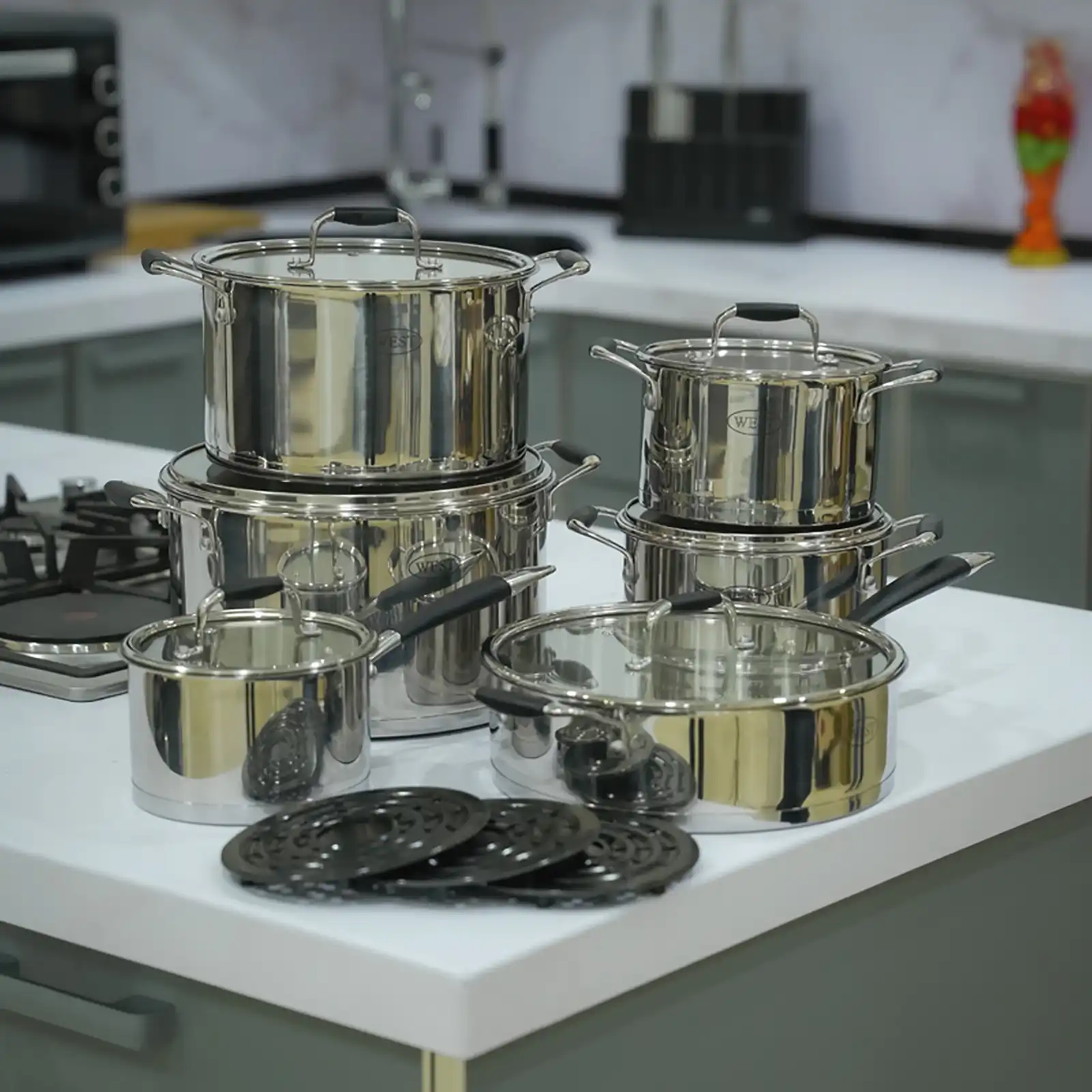 15 parçalı Paslanmaz Polad Qazan dəsti, mətbəxinizdəki hər bir yemək ehtiyacını qarşılayacaq ideal bir dəstdir.